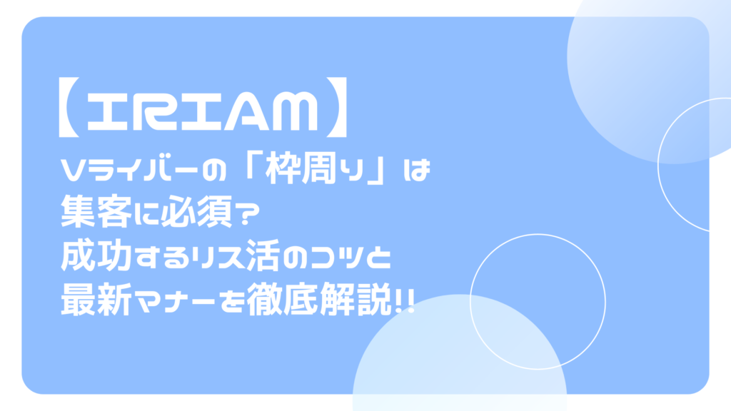 IRIAM(イリアム)で活動を始めたばかりのVライバー、あるいはデビューを控えた準備中の方にとって、よく耳にするのが「枠周り」という言葉です。