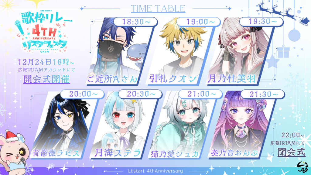 【ファンレター掲載中!】 桐生 朱々華さんへ : 桐生朱々華さんイベントお疲れ様でした。 IRIAM Happy 3Monthのイベントの時はまだ朱々華さんの応援しにいけていない時期だったので改めてガチイベを一緒に応援できたことにとても幸いでございます。 日頃から1人のリスナーとして、1人の友人として陰ながら心から応援しておりますが、私が最初に朱々華さんがLi:startで活動者として頑張っていくと報告があり1枚のイラストをお願いされたことがつい昨日のことに思えますし日に日に成長見られるお姿がじんわりと感動を覚えます。 また、これからたくさんのリスナーと仲良くなってこれから桐生朱々華さんが大きくなっていくことを心から願ってあります。 すずちゃんだいすきだよー! これからも末永くよろしくねー!!! / 神谷 みづきさんへ : 神谷みづきさんプレミアムライバーおめでとうございます!!もう尊敬しかないです!!!初めての視聴、初めてのスター、初めてのバッチとまだ出会って1ヶ月ちょっとしか経ってないのに思い出が沢山あります みづきさんの配信が楽しみで楽しみで… 体調に気をつけてこれからも配信頑張ってください!!!!! / 甘橙 ゆーや。さんへ : お誕生日おめでとう いつも楽しい配信をありがとう やっとファンレターの書き方がわかったよ……ゆーや…… テメーいつも下ネタ言う時ピー音鳴らしてるけど貫通してるからな🫵🫵🫵🫵🫵 まぁこの優しい俺は目を瞑ろう( ˘ω˘ ) スヤァ… とにかくお前の配信は面白いし、楽しいし、安心するし、元気貰えるし、めちゃめちゃ助かってる。いつもキモとか強い言葉を使ってごめんね。実はあれ内心ちょっと気にしてる。はわわ……ってなってデレ?を隠そうとするとツンツンしてしまうんです。配信の時とかに好きだ!とか素直に言えないたちなんでね(´・∀・`)ヘッ恥ずかしいんですよォ🫵🫵🫵🫵🫵だがまぁそんなことも許してくれるゆーやが大好きです。これからも頑張ってね。ずっとずっっーと応援してます! PS ツンデレじゃないからな / ベガ=タナカさんへ : タナカさん!!!プレミアムライバー改めておめでとうございます!!!!最初ほんまに何となく入ってみよ〜と思って入室したら、常連みたいな対応の仕方で、Twitter繋がってるよな〜!って言ってくださったその瞬間で、この方はすんごいひとなんやって尊敬するようになりました。単純すぎる理由ではあるんですけど、今になってはもうベガさんが生きるための空気みたいになってます。喋り方も笑い方も誰に対しても平等に扱ってる姿勢も、ベガさん自体の配信への真剣さも、いっつもそれが私の頑張る理由となってます。私のバナイベ後は、悔しい悔しいと言ってる私に優しい言葉をかけて下さって、他事務所なのに配信のことはなんでも頼ってって、いつまでも上で待っとるからなって、憧れで尊敬してるベガさんに言われたあの夜ほんまに涙とまらんくなりました!!そのお言葉を信じてこれからはもっと上を目指そと思えました。ほんまに出会ってくださって感謝しかないと思ってます。ベガさんを尊敬することができる時代に生まれてほんまにほんまに良かったあ、、、、と心の底から良かったと思ってます。これからも仲良くしてくださいぃ!!!最後に改めて、おめでとうです。 / 宙虹 みゅーさんへ : 最速すげぇ!!!おめでとう御座います👏👏 これからも末永くよろしくお願いします / 宝来 リッカさんへ : リッカさん、お菓子イベ2位入賞おめでとう! ギフティングすると、リスナーの財布の心配もしてくれるのはうれしいけど、心配しないでね。 お菓子沢山食べたらちゃんと運動もするんだよ / 八咫烏 レヴさんへ : レヴ姉イベント入賞おめでとう! これからも応援するね! / ルパ・ウパ子さんへ : 研修生卒業おめでとう。 いつも楽しい配信をしてくれて毎日の楽しみになってます。 自分のやらかしや、周りの人の揚げ足をとっていつも笑っている所を見るとこちらもつい笑ってしまいます。 毎日配信してくれてありがとう。 これからもよろしくね。 P.S. ファン鯖の運営を私がしてますが、今後やるおつもりはありますか? あとバナイベのガチャ特典やバッチ特典はどうしますか? いいお返事を期待してますね。 / 百瀬 らん丸さんへ : らん丸くんお誕生日おめでとう! / 宙虹 みゅーさんへ : みゅーちゃん!!1位、2位おめでとう😭😭😭💖💖💖💖事務所イベ中嫌なことたっっくさんあってもう嫌になって逃げたくなったよね。なのに最後まで頑張ってて本当に凄かったし1番輝いてたよ🌟🌟これからもみゅーちゃんのそばに居させて1番近くで応援させてください🎶改めておめでとう!だいすきだよ🥺💘 / ベガ=タナカさんへ : 初めにプレミアムライバーおめでとうございます。これまで努力し、継続した証だと思います。知ったのは最近かもしれませんが、いつも枠に行くと楽しく、リスナーとの絡みが濃い、同じ大阪民として尊敬するところしかありません。初めて会ったのは歌枠ですが、歌が上手いのは