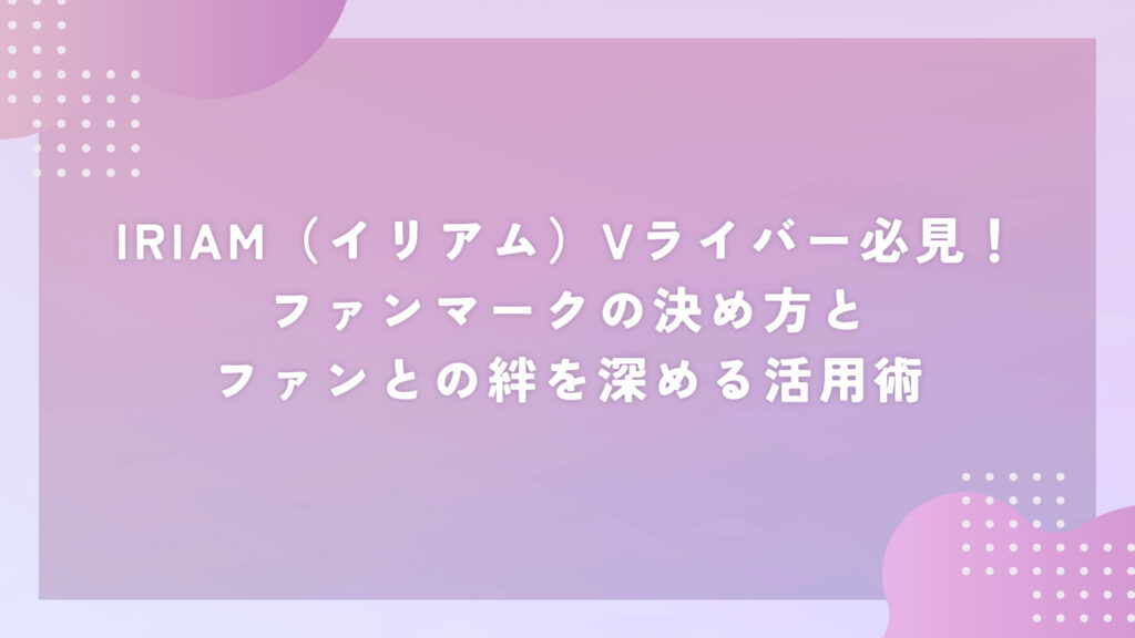 IRIAMのVライバーとして、ファンマークはファンとの関係を視覚化し、コミュニティを温かく育てる有効な手段です。キャラクター性に合ったマークを選び、適切に活用すれば、配信の満足度がぐっと上がるはずです。最新の配信文化では、こうした小さな工夫が長期的な人気につながっています。自分らしいスタイルでファンマークを活かしてください。